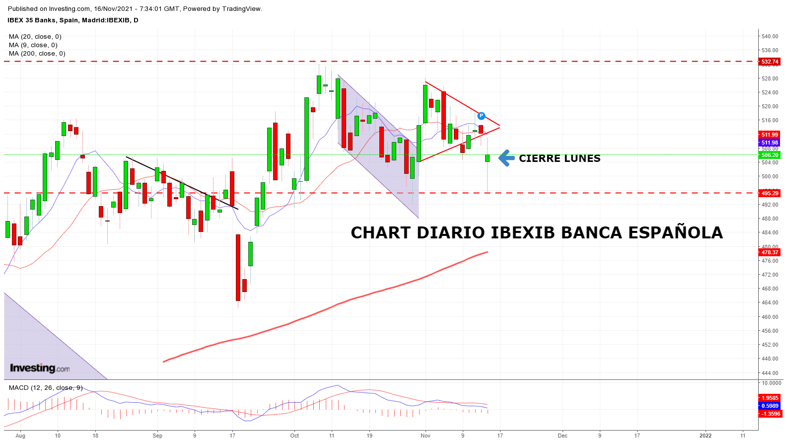 En caso de caídas, hay que resolver la situación en el índice bancario, buscamos soporte en mínimos de ayer y para bajadas de más de 1 % una buena zona es MA 50 Sesiones en 8.900.