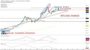 Superada la Resistencia 56.000 $ esta mañana, nueva Resistencia 57.000 $.