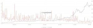 Por contra, la tasa de dificultad de red baja. Esta llamada dificultad se auto programa en el blockchain cada 15 días aprox. En el periodo anterior, durante la ruptura, ambas tasas se correlacionaron al alza como suele ser habitual en grandes subidas apoyadas por manos fuertes ( ballenas).