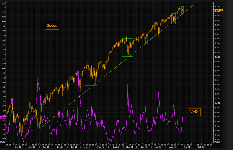 Como vemos en el gráfico de portada, no sólo el VIX, también su propia volatilidad – VVIX – se muestran alcistas.