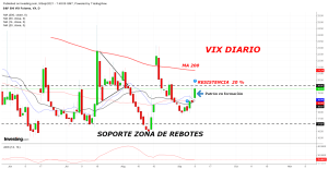 Durante la movida y bajista apertura de Europa hace una hora, tenemos al S&P dónde queremos, testando soporte de MA 20 Sesiones y con los Futuros del VIX testando de nuevo la Resistencia del + 20 % con un patrón chartista alcista – suelo redondeado – en formación.