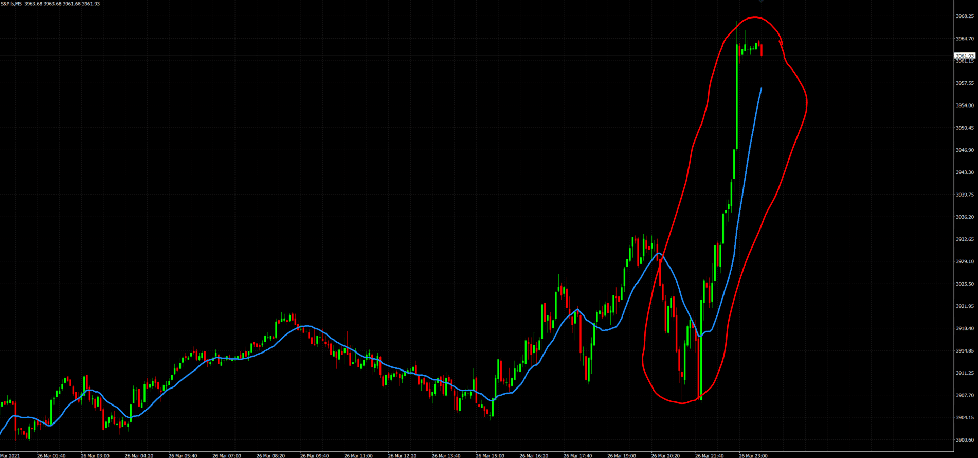 Como he comentado, el viernes en los últimos minutos vimos claramente una entrada de capital correspondiente al Smart Money del que ya hemos hablado con anterioridad en las sesiones del Club del Trader. Dicho movimiento dejó al SP 500 cerca de máximos históricos para afrontar una última semana de primer trimestre que pinta realmente bien.