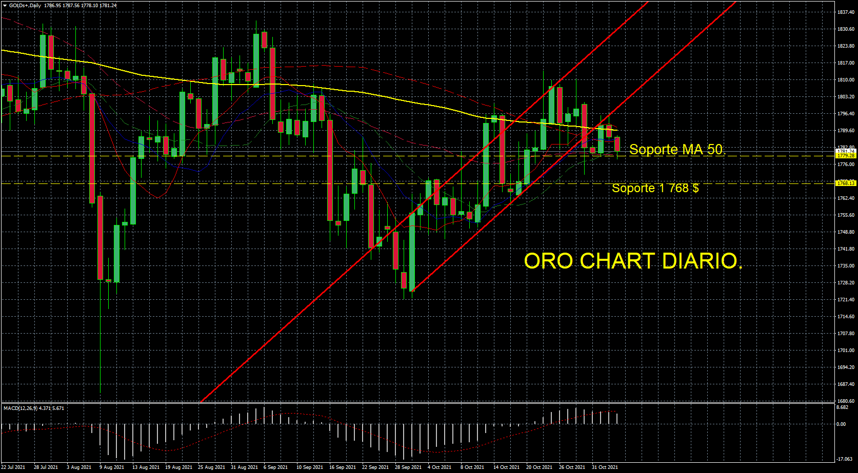 El Oro bajista y testando sporte MA 50 sesiones que es la alerta para posibles cortos buscando recorrido. hay que tener en cuenta que hay suficientes velas de confirmación de Diario para dar por perdido el Soporte de MA 200 y el canal alcista. Todo esto a pesar de las divergencias alcistas que podemos observar. Pero cuando juega la FED, una divergencia es poca cosa en el intra día “Don’t fight the FED”.