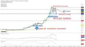Por A. técnico y chartista, si se cumple el patrón, vemos que la proyección nos llevaría a nuevos máximos del activo. Pero, evidentemente, como en cualquier activo o materia prima – hay que tratar al BTC como una commodity virtual ( como señala la Commodity Futures Trading Commission en sus papers https://www.cftc.gov/LabCFTC/Primers/index.htm) – no todo es el A. Técnico.