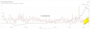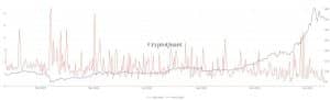 El gráfico de arriba, All Miners to All Exchanges Flow Mean, muestra un amento de las ventas por parte de los mineros en las últimas 24 horas. Por el momento, no han llegado al máximo de ventas de la semana que tuvo lugar el domingo. Es lógico que si la tasa de dificultad escala y la potencia de cálculo o tasa de hash no está a la altura, como hemos visto en el gráfico anterior, los mineros venden en un escenario de liquidez y bajas expectativas de rentabilidad. Por el momento, no son grandes ventas.