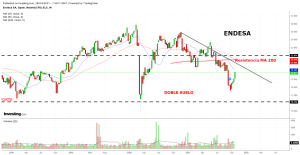 Hay también otras bluechips españolas que salen ahora a la palestra con atractivo renovado para este escenario; como Repsol, que presenta buenos resultados y avisa sobre aumentos de dividendo, o ENDESA, que tras una caída anual muy severa presenta signos de recuperación técnico con un patrón alcista de doble suelo , una Beta defensiva de 0.60 respecto al IBEX 35 y también una política atractiva de dividendos.