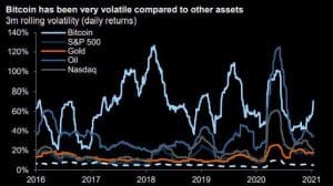 Interesante estudio de Goldman acerca de la volatilidad del Bitcoin. Vale más un gráfico que mil análisis.