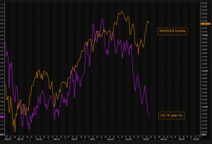 Los futuros del VIX, volatilidad del S&P 500, empiezan a reaccionar a la baja, en zona ya por debajo de 20%, y la vela muestra intención de empezar a cerrar el gap alcista. La explicación viene por el BID / ASK de las protecciones que empiezan a estar solicitadas, ya que como vemos, los inversores vuelven a entrar largos y consideran proteger las nuevas posiciones. Esto revela que realmente no sólo particulares, si no institucionales entran largos al mercado confiados en las previsiones de los resultados empresariales y en el momento estacional positivo.