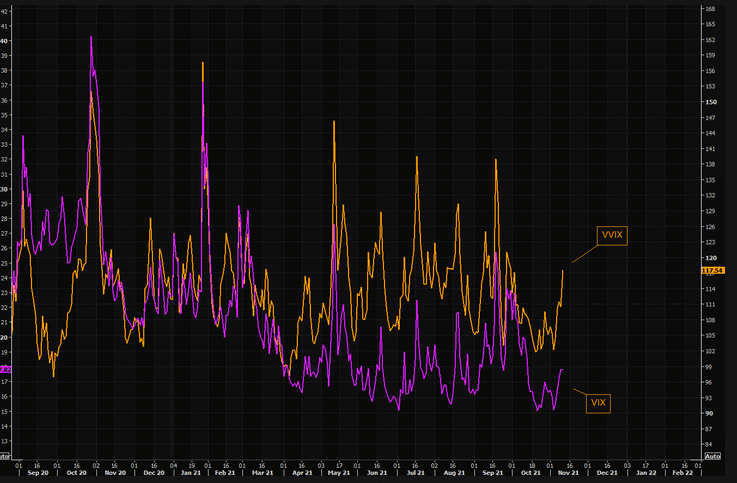 La volatilidad del VIX sigue alcista sin prisa pero si pausa, ninguna novedad pero … si es cierto que desde ayer la volatilidad del propio VIX , el VVIX, ha despertado. Cuando esto ocurre, lo habitual es que acabe con un GAP al alza en los futuros del VIX. Dicho GAP, siguiendo patrones anteriores, situará a la volatilidad por encima del 20 % y, para entonces, las manos fuertes ya habrán comprado las PUTS de protección que hasta ahora despreciaban ( El PUT / CALL Ratio sigue bajo pero empieza a subir ).